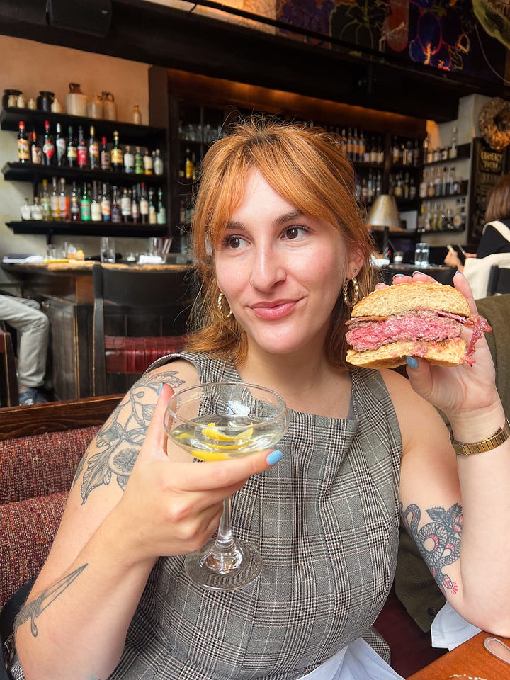 Sure enough we arrived and there was a table of 6 or 7 guys all eating their own burgers (dudes rock). Our group of four was sat at a corner booth and our very kind waiter asked if we were celebrating anything and we said no but when he walked away I muttered that it was my last meal before I was getting put down. Sorry! It’s true! This was my pup cup <3 It was 1pm on a Tuesday so I also ordered a strong martini in honor of being a businesswoman for four more days.